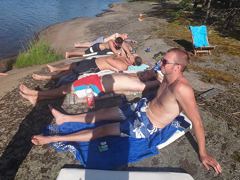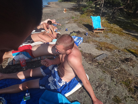 Besöker Dicks sommarstuga i Mustallavik för att sola, bada åka båt och dricka
